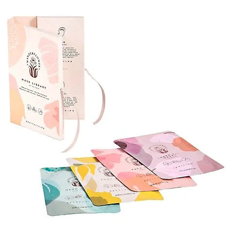 - Set of four Sheet Masks for the face (hibiscus), eyes (rosewater), hands (aloe vera) and feet (sunflower)