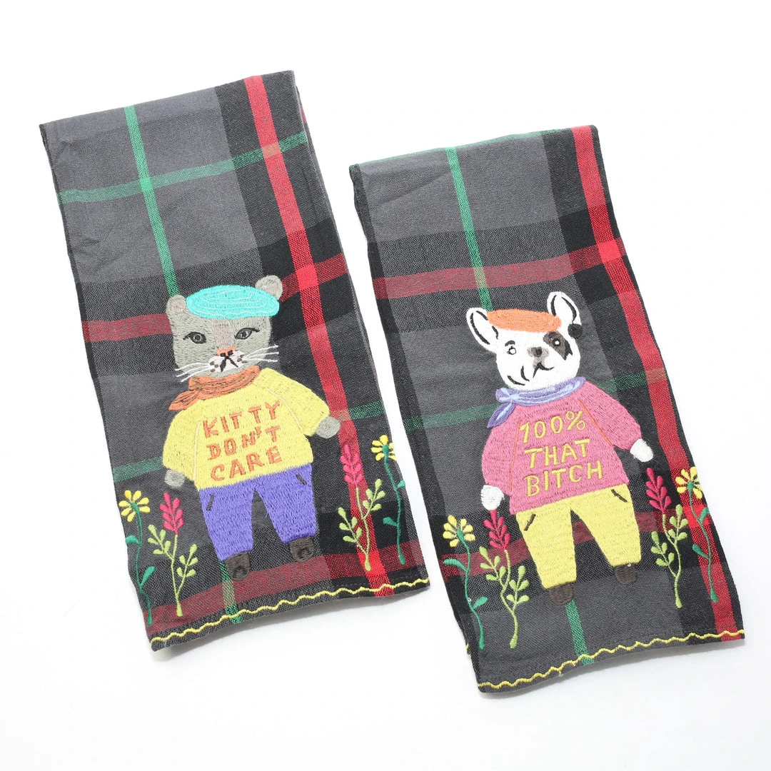 Patina Stores French Bull Dog & Kitty Tea Towels