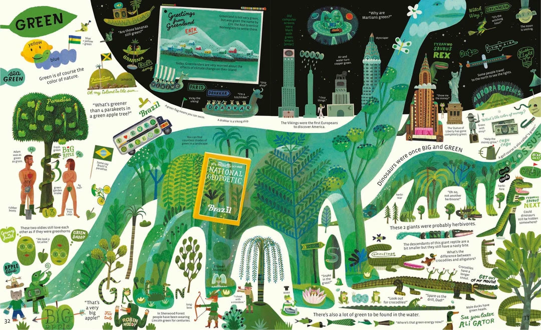 One winter morning, Otto the cat looks out the window and sighs, “Why is everything so gray today?” Luckily his friend Leon the chameleon is around to show him just how many colors there are in the world. In these exciting and funny spreads filled to the brim with brilliantly illustrated objects, Leon and Otto identify people, places, and things of every hue. On pages dedicated to infinite shades of a single color, Tom Schamp’s brilliant drawings play with perspective and unexpected pairings.
