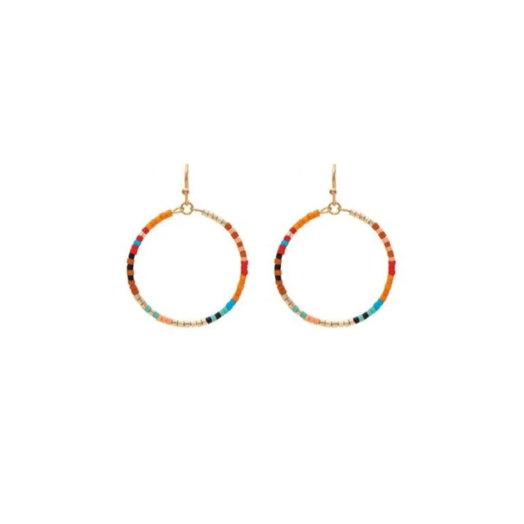 - Gold Jewel tone Mint Green, Red Orange Teal Gold Brown and Black Seed Bead Circle French Wire Earring