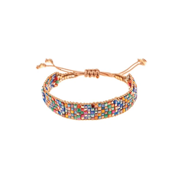 - Rainbow pastels woven box bead wide sliding knot bracelet