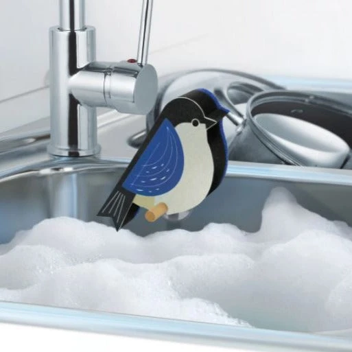 Dishes are for the birds, so it’s time to let these fly guys help out. Charming sponges with a modern design, Fred’s Perched conveniently sit on a “branch”, suctioned to your sink or tile backsplash, while they dry out. Each set contains 4 multi-layer sponges, 1 suction cup, and 1 wooden perch.