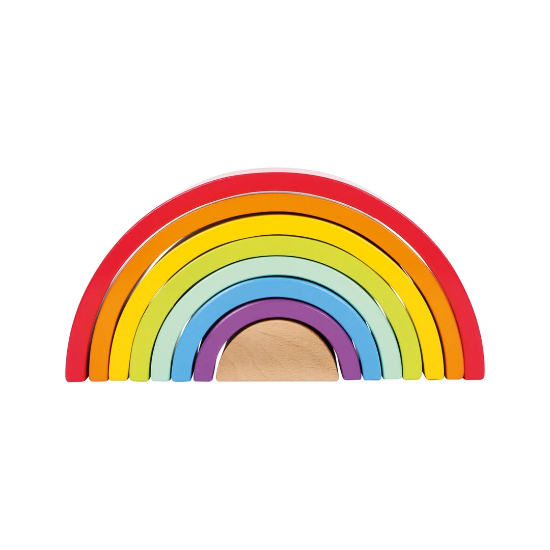 - Which colour is the prettiest? This robust wooden rainbow comes with a white wooden ball and is the perfect companion for infants. The wooden arch in rainbow colours are versatile and can be sorted, built up, and stacked.