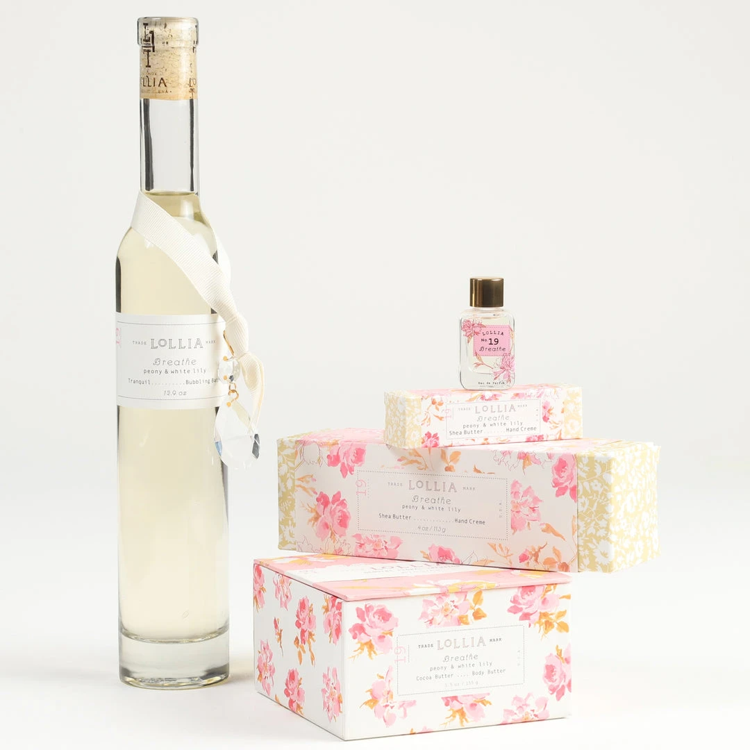 A floral heart of ruffled Peony and White Lily with sheer hints of fresh Grapefruit and Orange; a fresh air impression infused with leafy green notes surrounded by a hint of cool, mossy forest paths.