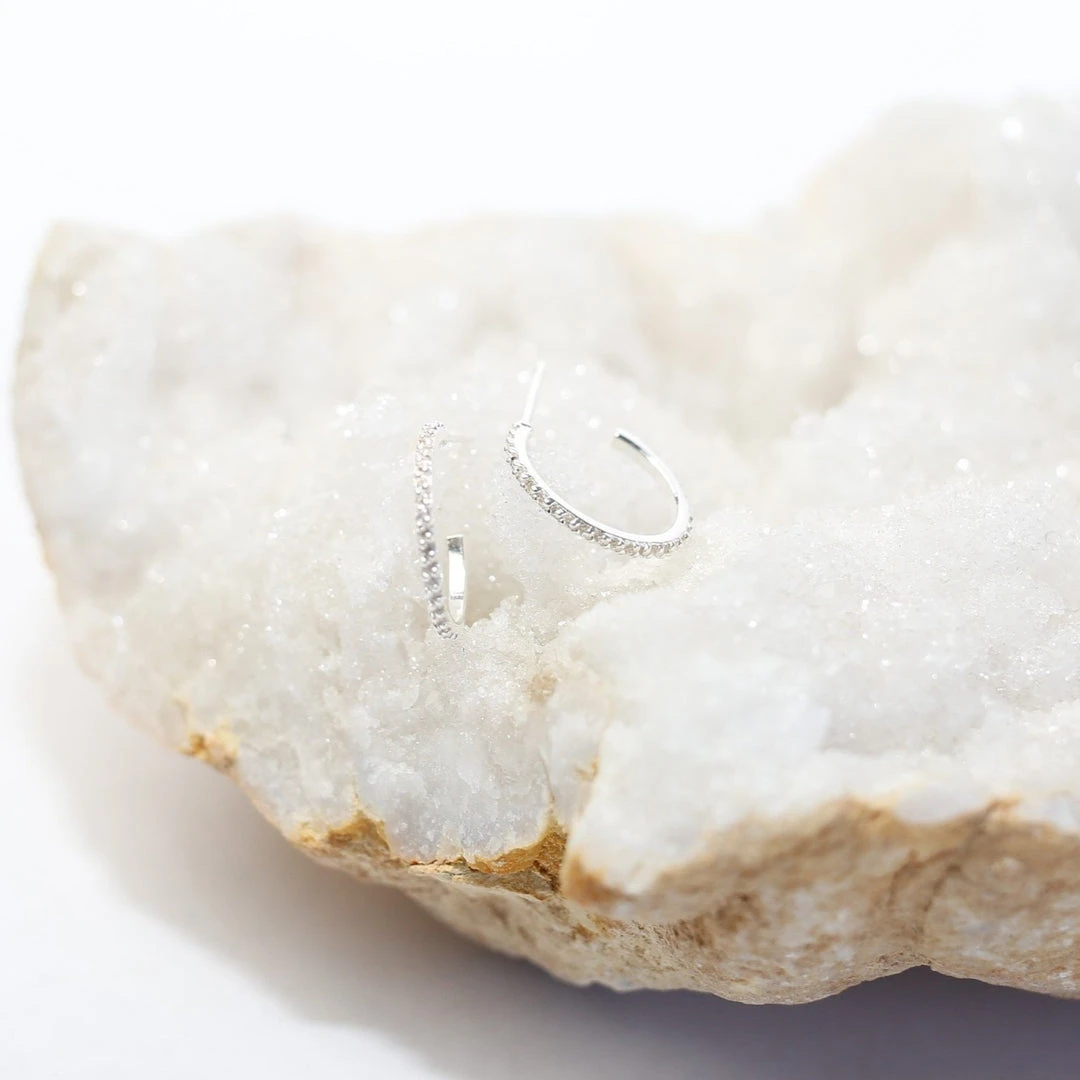 – Sterling Silver and Cubic Zirconia mini hoop earring.