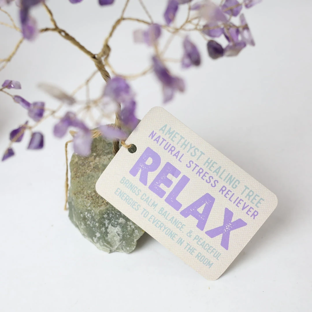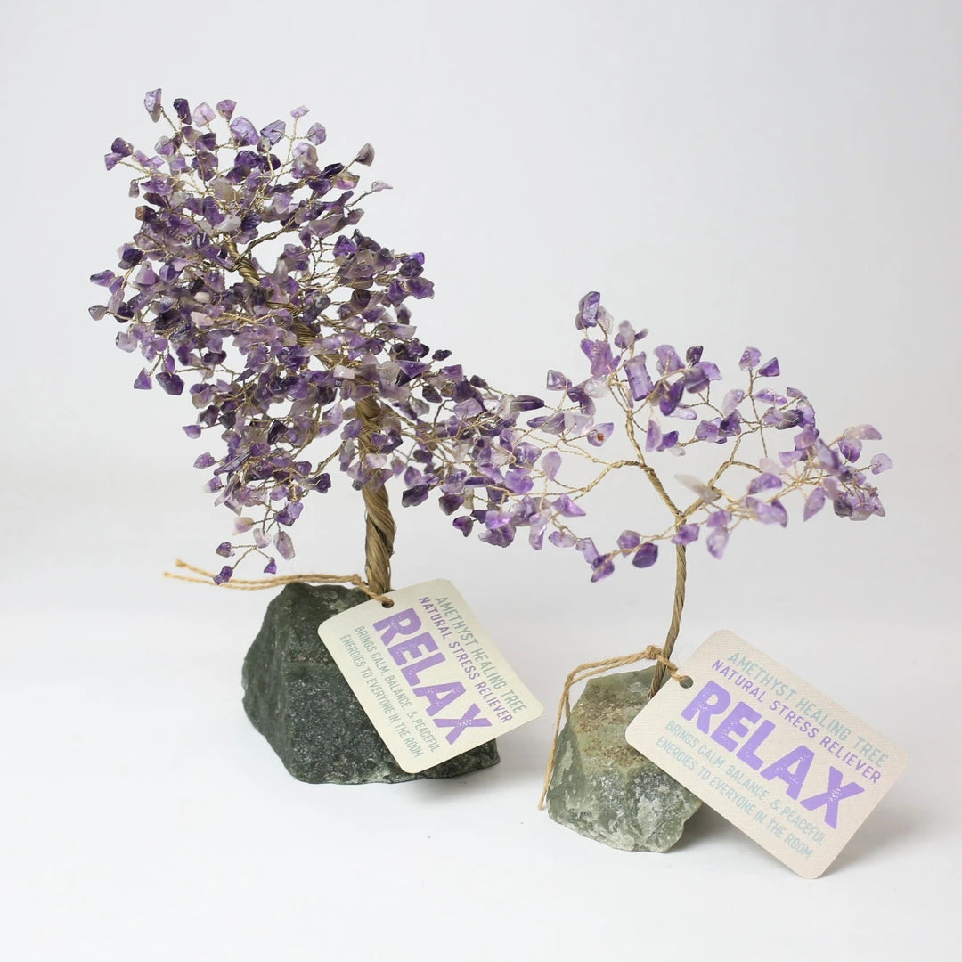 Amethyst gemstone “leaves” on an aventurine base
