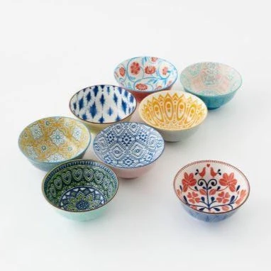 – 8 assorted patterned bowls