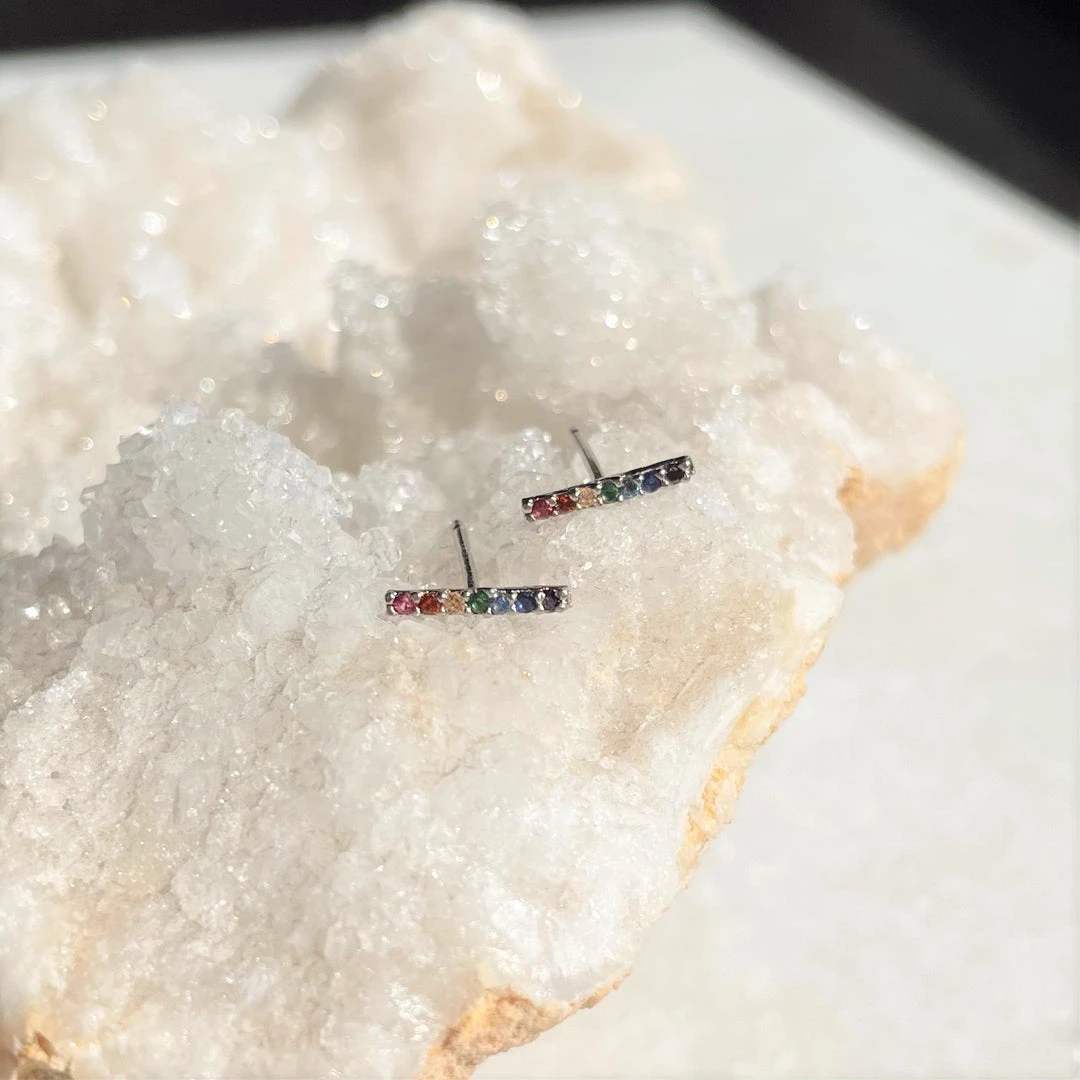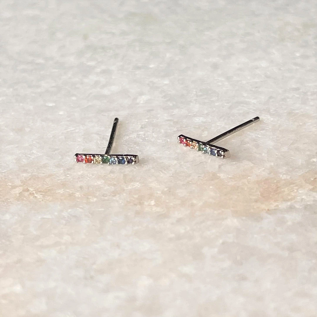 Patina Stores Tiny Rainbow Crystal Bar Earrings Jewelry