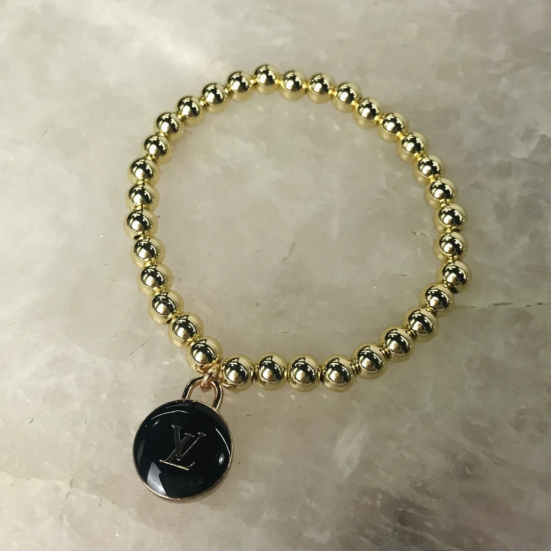 Materials: Upcycled designer buttons and bracelets beads are gold-filled
