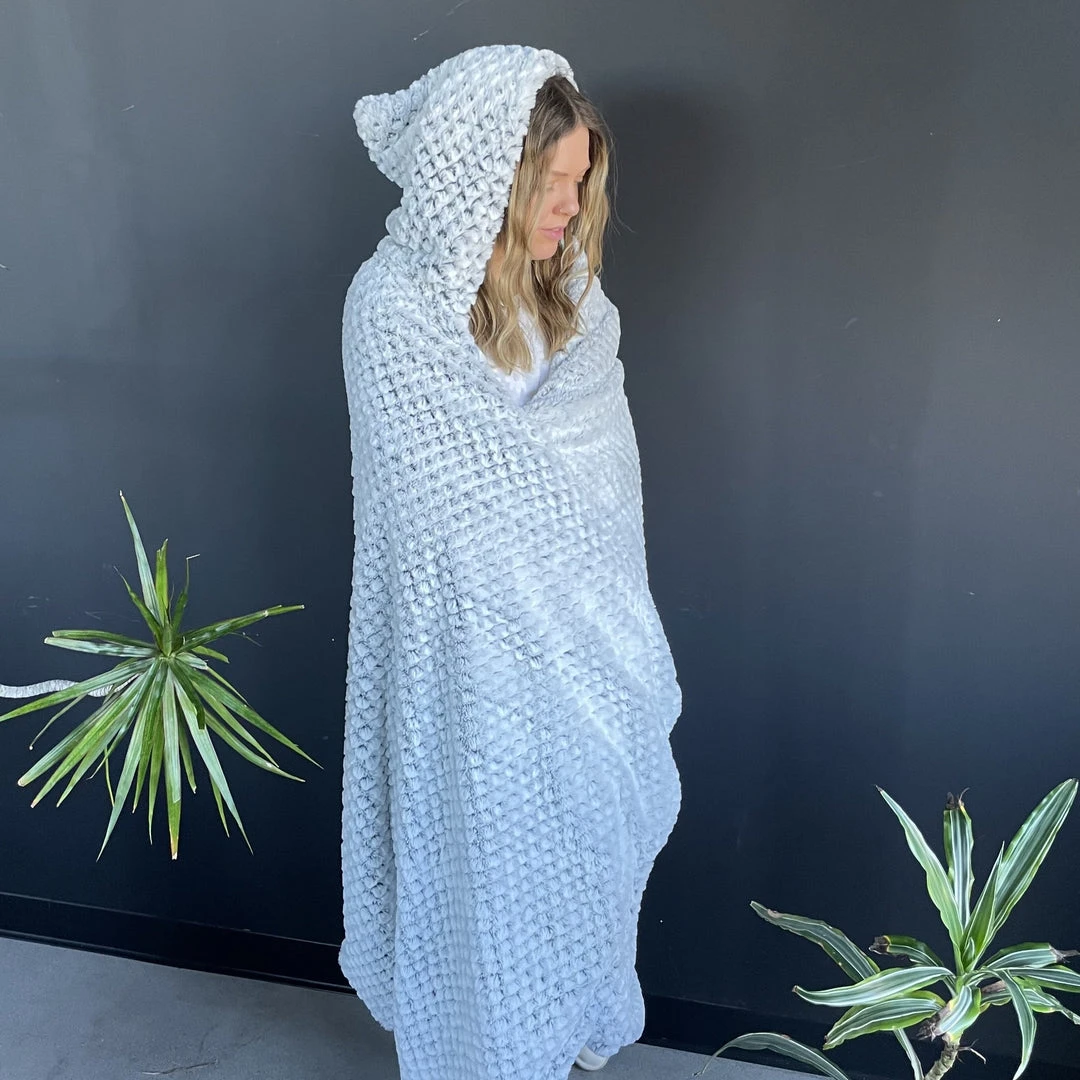 –Â Grey Diamond Hooded Sherpa Throw
